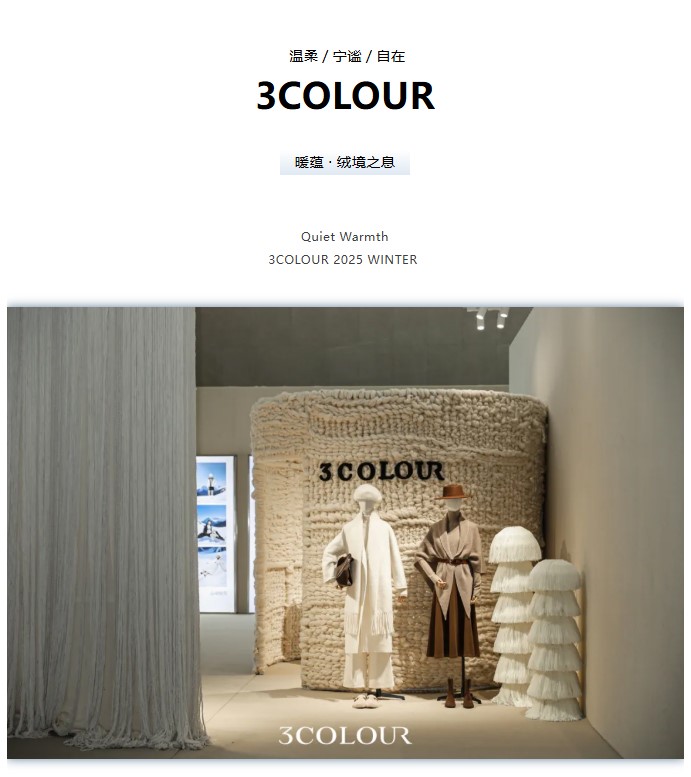 3COLOUR 2025 WINTER「暖蘊 · 絨境之息」,于冬境低語,以輕柔韻律,傳遞靜謐的溫暖,織就一場無聲的暖意敘事。