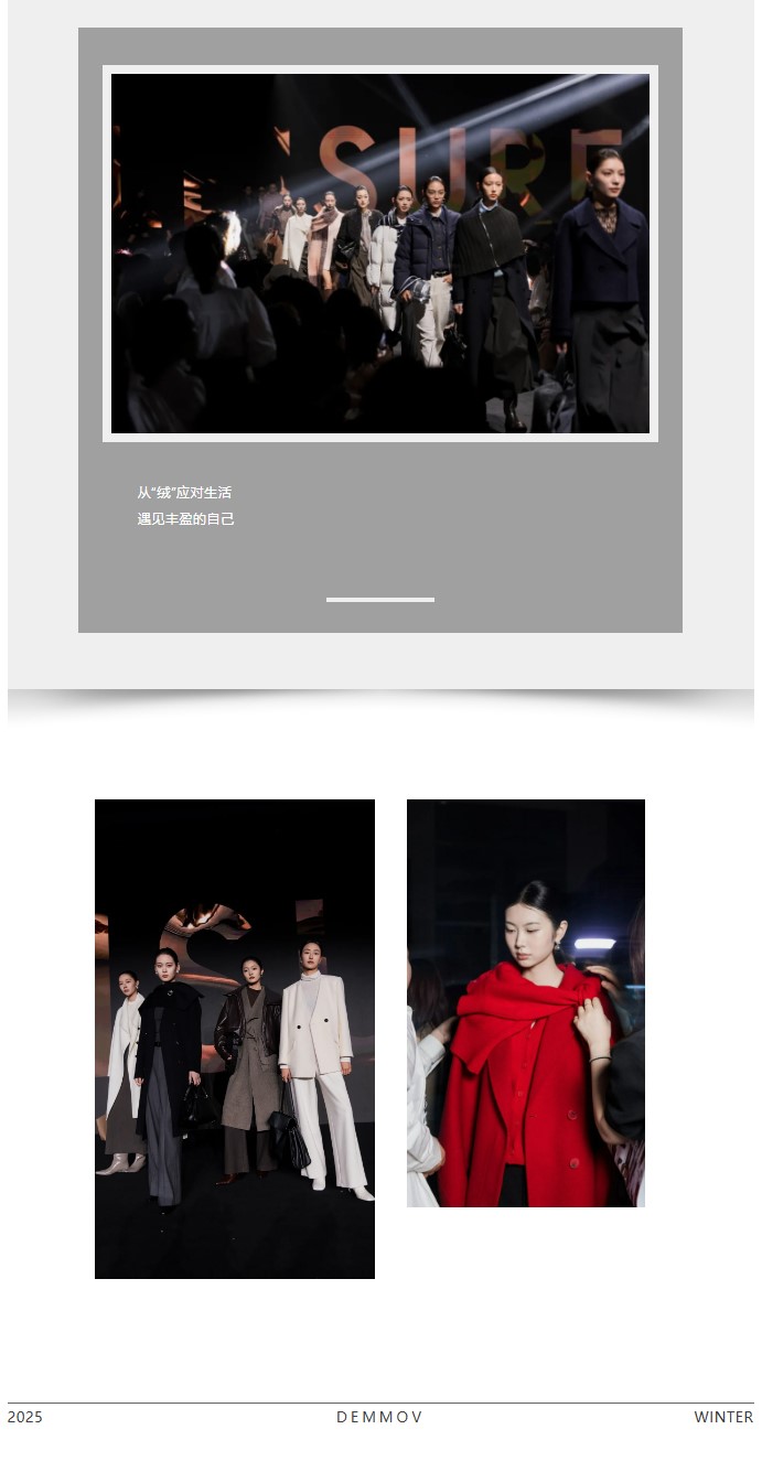 暖蘊織就,絨境無聲。溯源時裝的本心,從纖絨到成衣,由觸感至心境,構(gòu)筑都市智識女性身心與外在的親密對話。